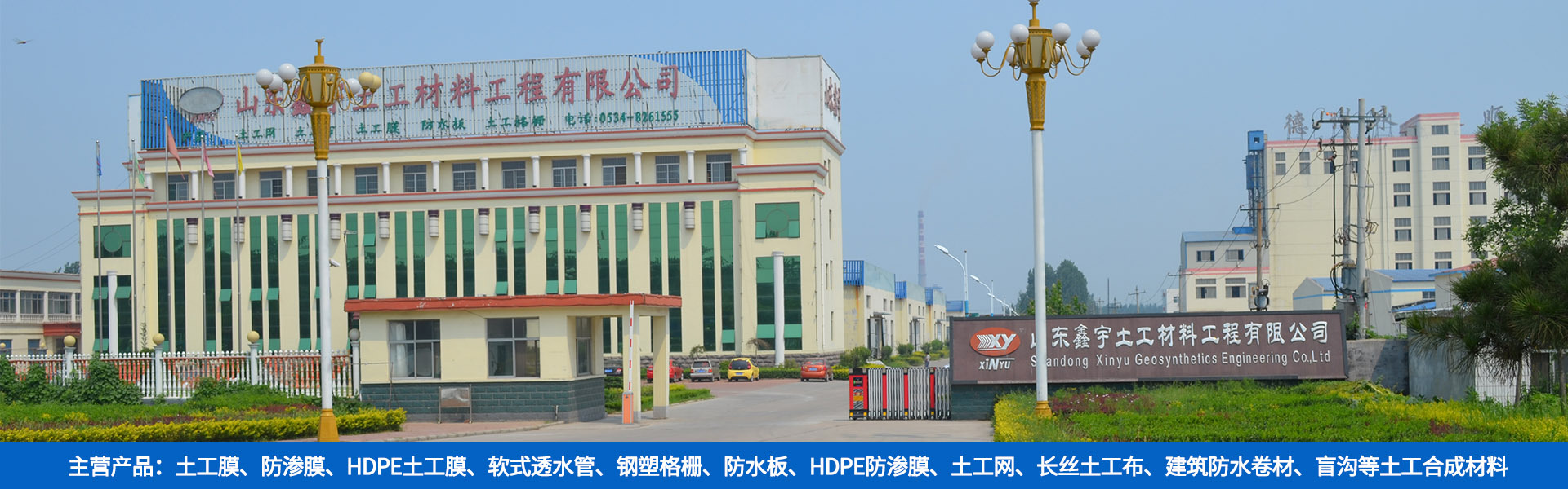 山東鑫宇土工材料工程有限公司是以新型復合土工材料的生產制造為主,集科研開發、防滲設計、技術咨詢、施工服務于一體的科技型材料工程公司。是我國目前規模較大的土工材料生產基地之一,位于山東德州陵縣,地理位置優越,交通運輸十分便捷,是山東知名的土工膜廠家、防滲膜廠家、長絲土工布廠家、HDPE防滲膜廠家、HDPE土工膜廠家。公司先后在上海、北京等四十多個大中城市建立了銷售網絡或代理機構,產品在各省市工程中大批量應用。產品廣泛用于公路、鐵路、橋梁隧道、庫渠水利、人工湖、環保、航空、礦業、農業等各個領域。